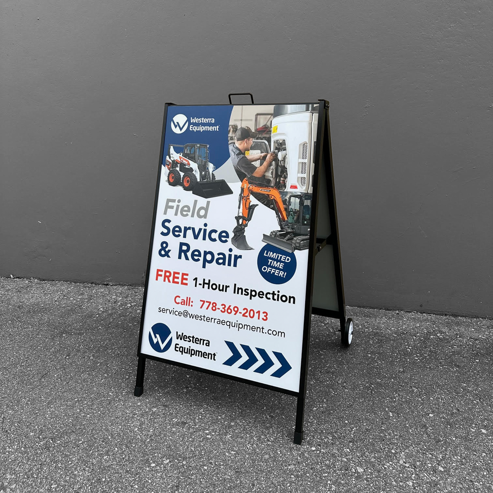 Black Metal A-Frame Sign with Wheels – Portable Sidewalk Sign for Outdoor Advertising