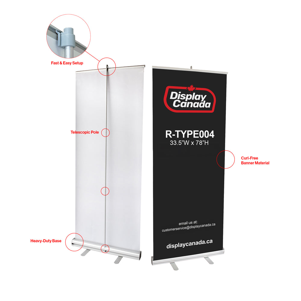 The 33.5”W x 78”H size provides ample space for your custom design, ensuring that your message is visible from a distance. Whether you're at a trade show, conference, or retail event, this roll-up banner offers high-impact visibility and a sleek look, making it ideal for promoting your business or brand.