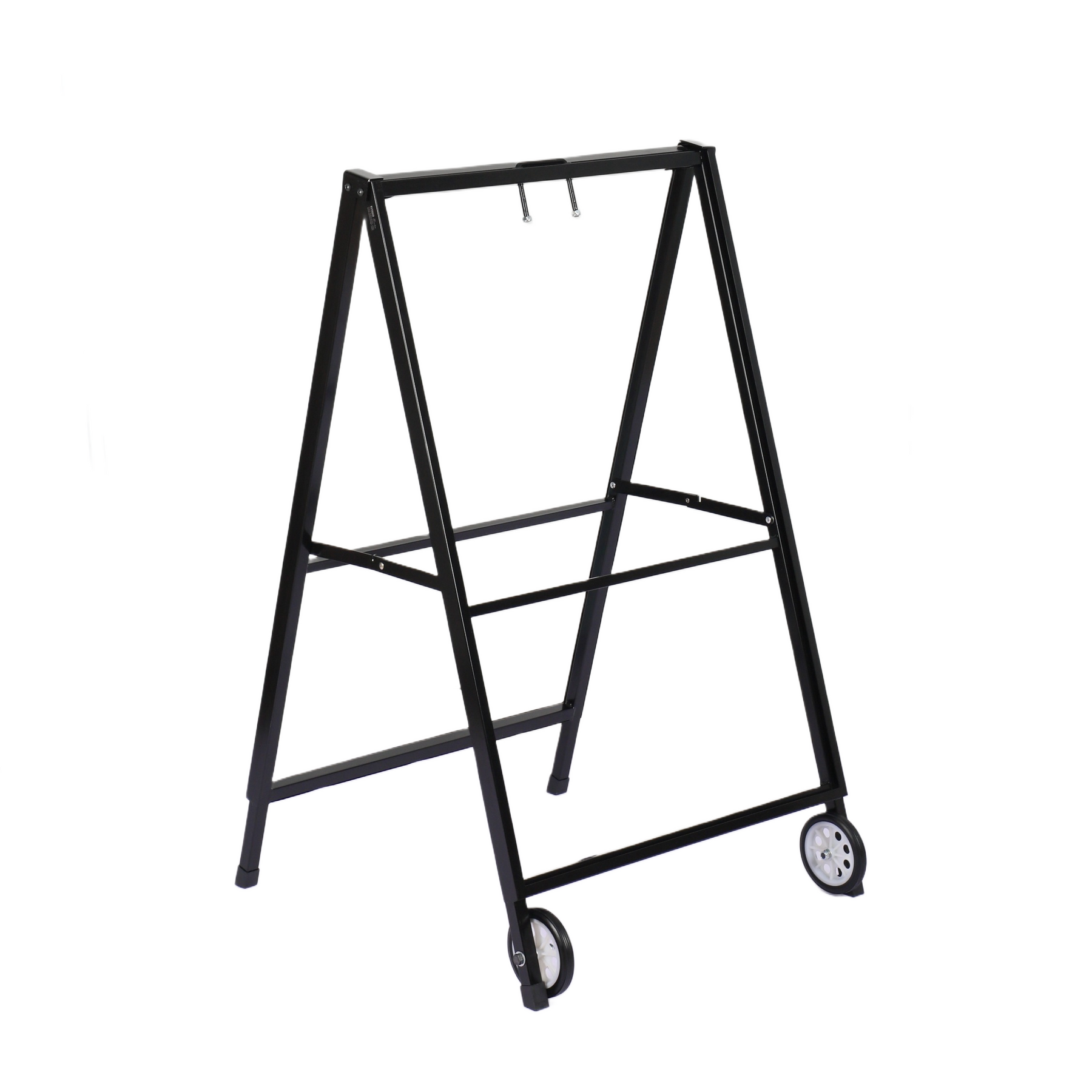 Make your outdoor advertising more convenient and effective with the Black Metal A-Frame with Wheels. This high-quality sidewalk sign features a durable black metal frame and built-in wheels, providing a portable and flexible advertising solution for businesses, events, and promotions. Perfect for showcasing your business hours, special offers, menu boards, or event announcements, the display area allows for a large, visible surface to grab the attention of passersby.